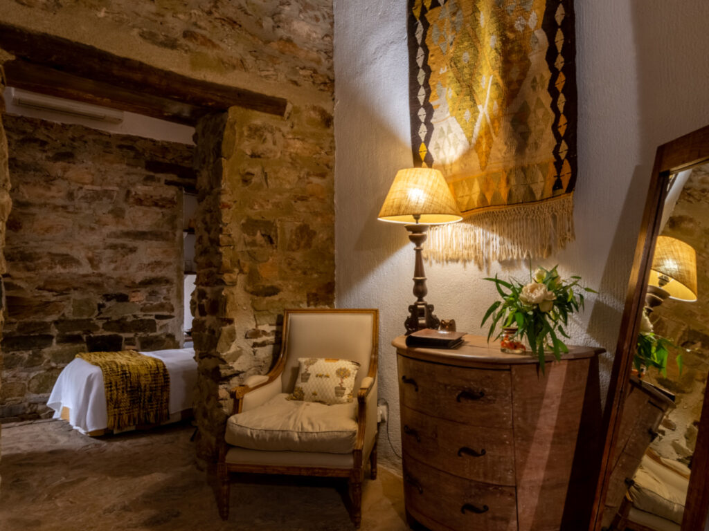 The decor is traditional, simple, and soulful. The walls and floors are original, made from stone from the property, and the ceilings maintain their original wood and cane structure.